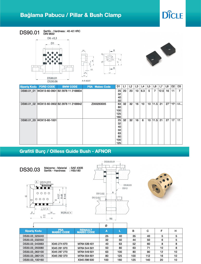Pres Kalıp Setleri / Standart Ölçü Tablosu