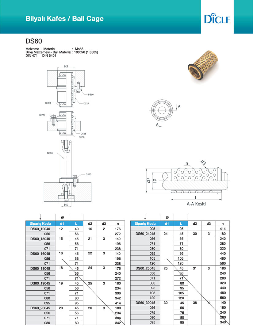 Pres Kalıp Setleri / Standart Ölçü Tablosu