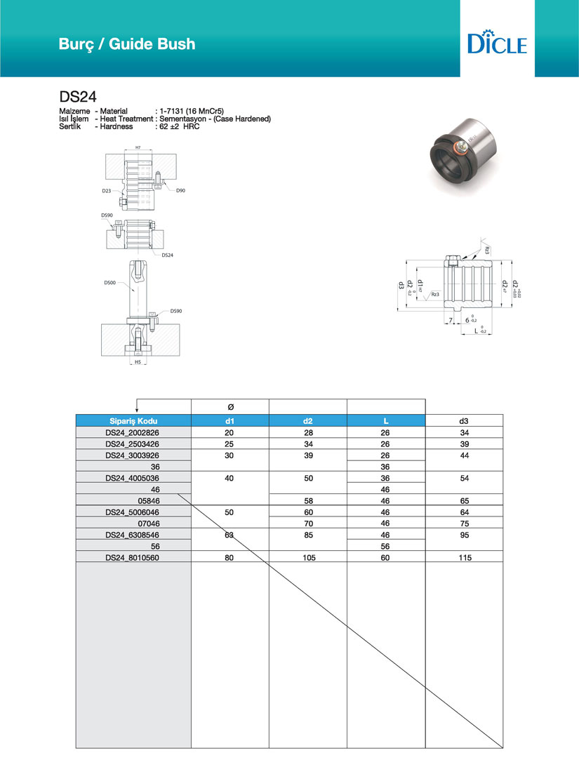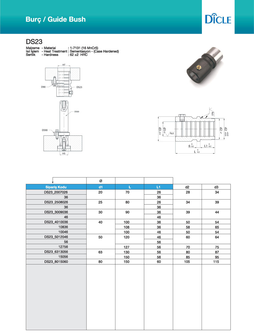 Pres Kalıp Setleri / Standart Ölçü Tablosu