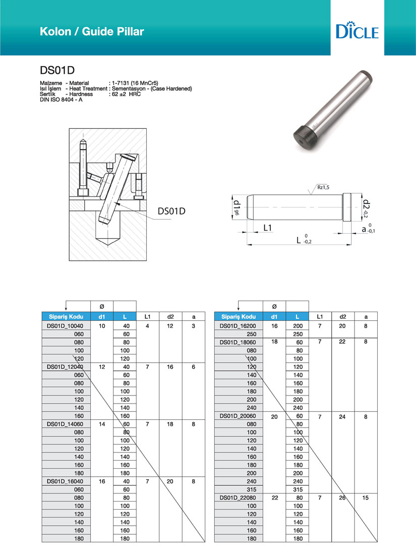 Pres Kalıp Setleri / Standart Ölçü Tablosu