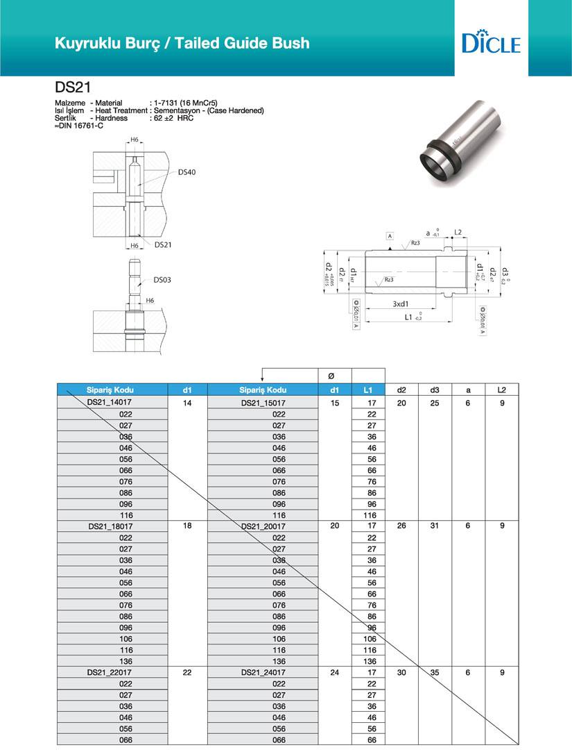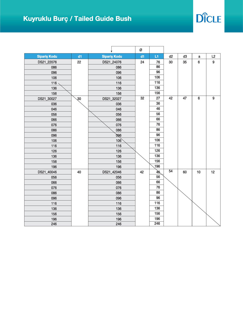 Pres Kalıp Setleri / Standart Ölçü Tablosu