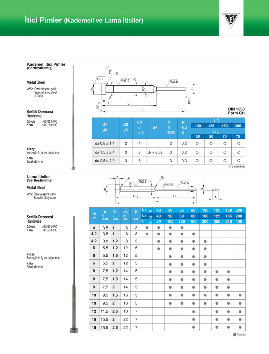 Plastik İticiler, Kesici Zımbalar ve Diğer Kalıp Elemanları