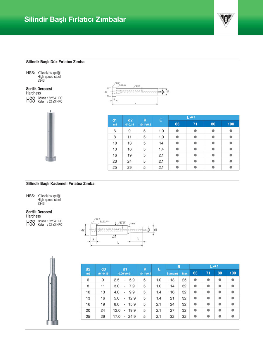 Silindir Başlı Düz ve Kademeli Fırlatıcı Zımbalar